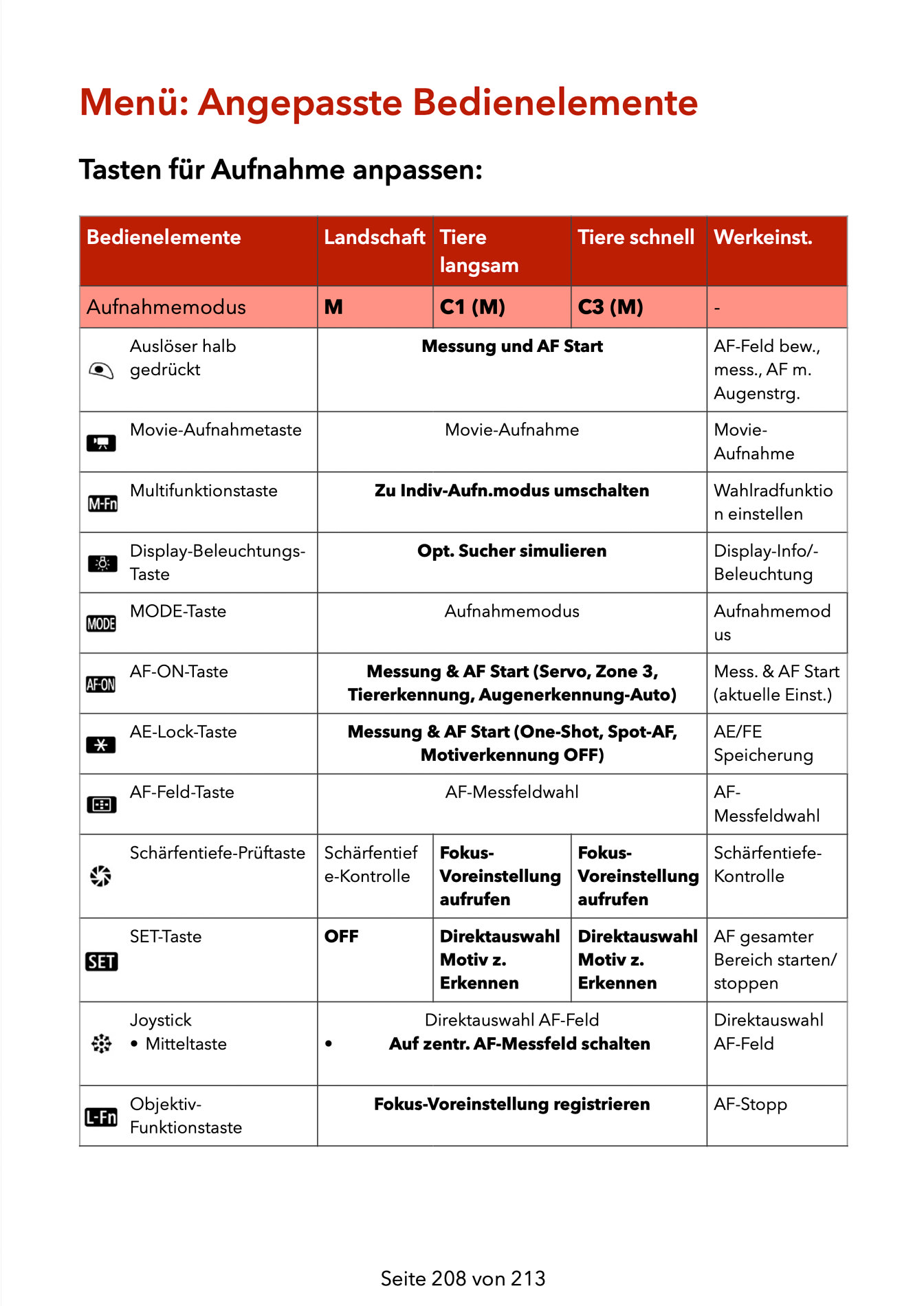 – Konfiguration der Bedienelemente (Kamera & Objektiv)