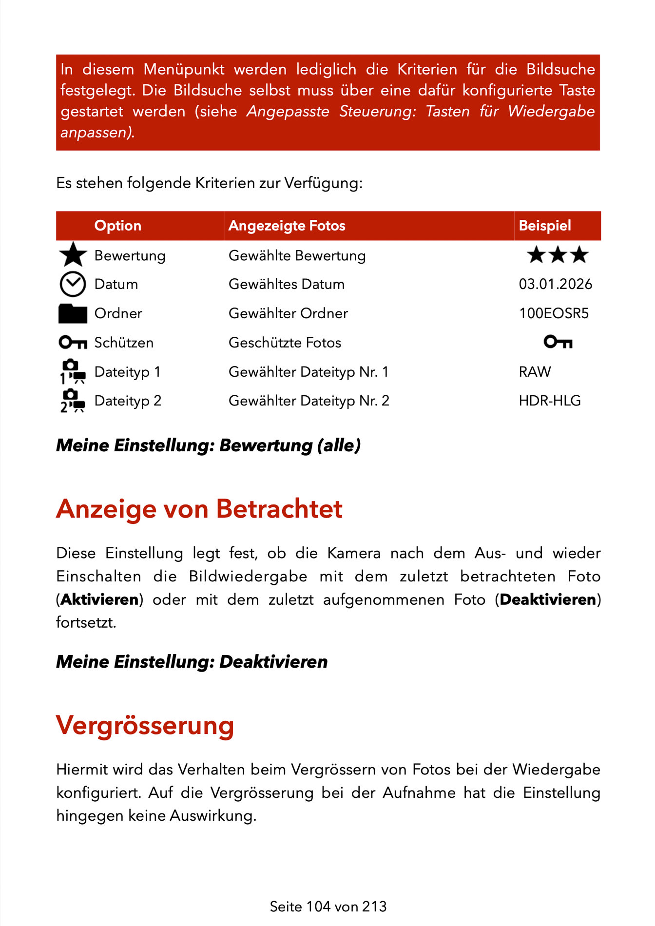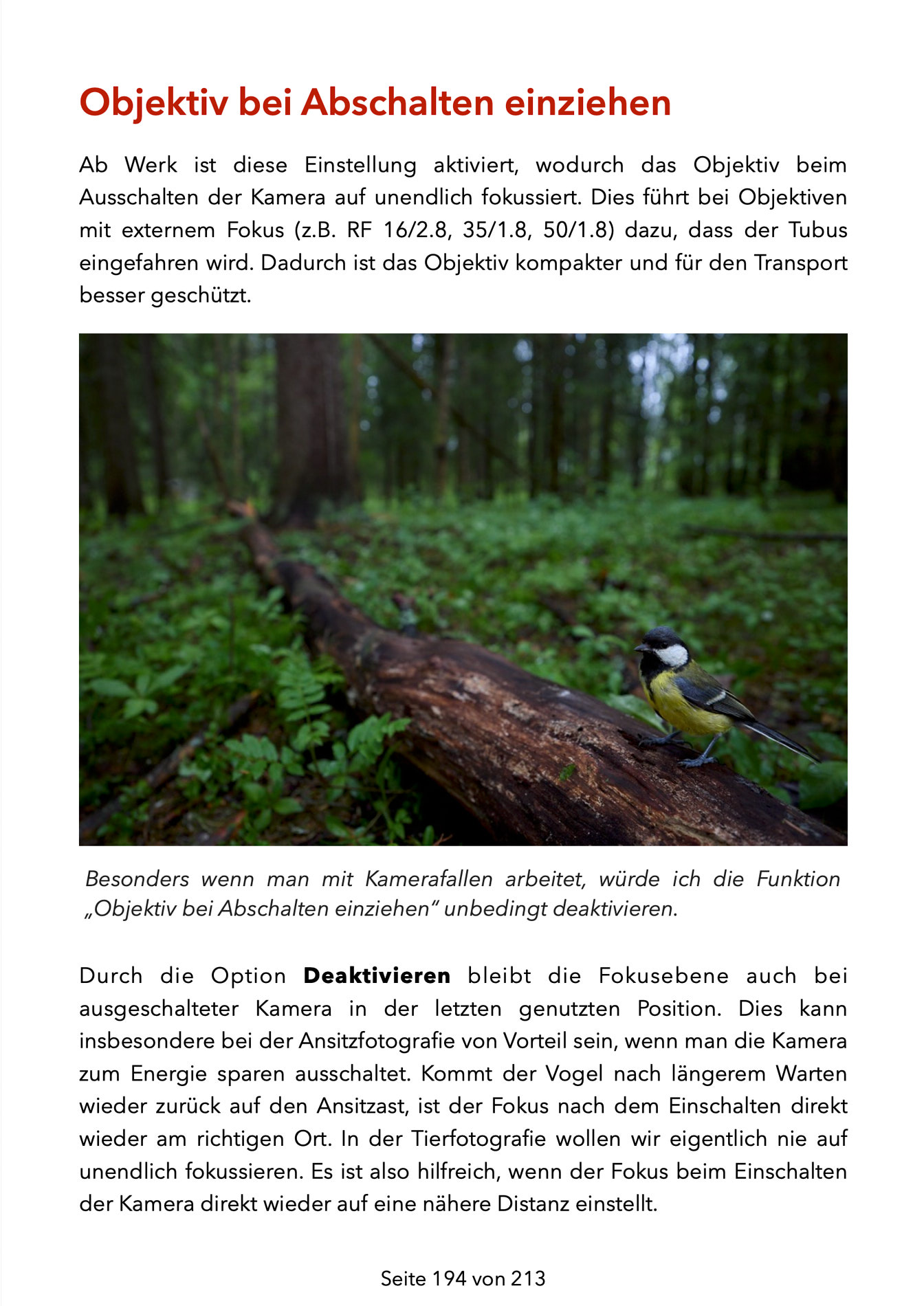 – Erklärung aller für die Naturfotografie relevanter Menüpunkte