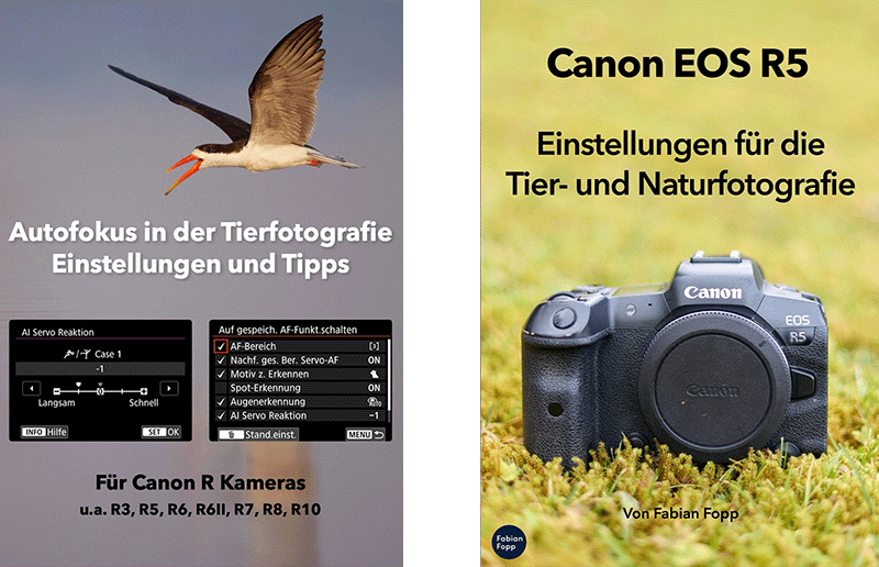 In dem „Autofokus in der Tierfotografie – Einstellungen und Tipps “ gehe ich detailliert auf alle Einstellungen ein, welche mit dem Autofokus deiner Canon EOS R Kamera zusammenhängen. Dabei gehe ich deutlich mehr in die Tiefe als in dem Setup-Guide „Canon R5 – Einstellungen für die Tier- und Naturfotografie“.