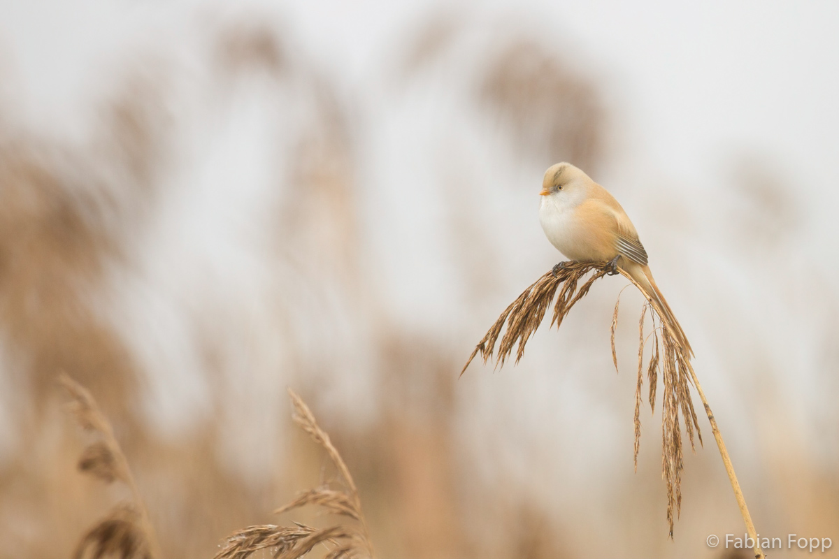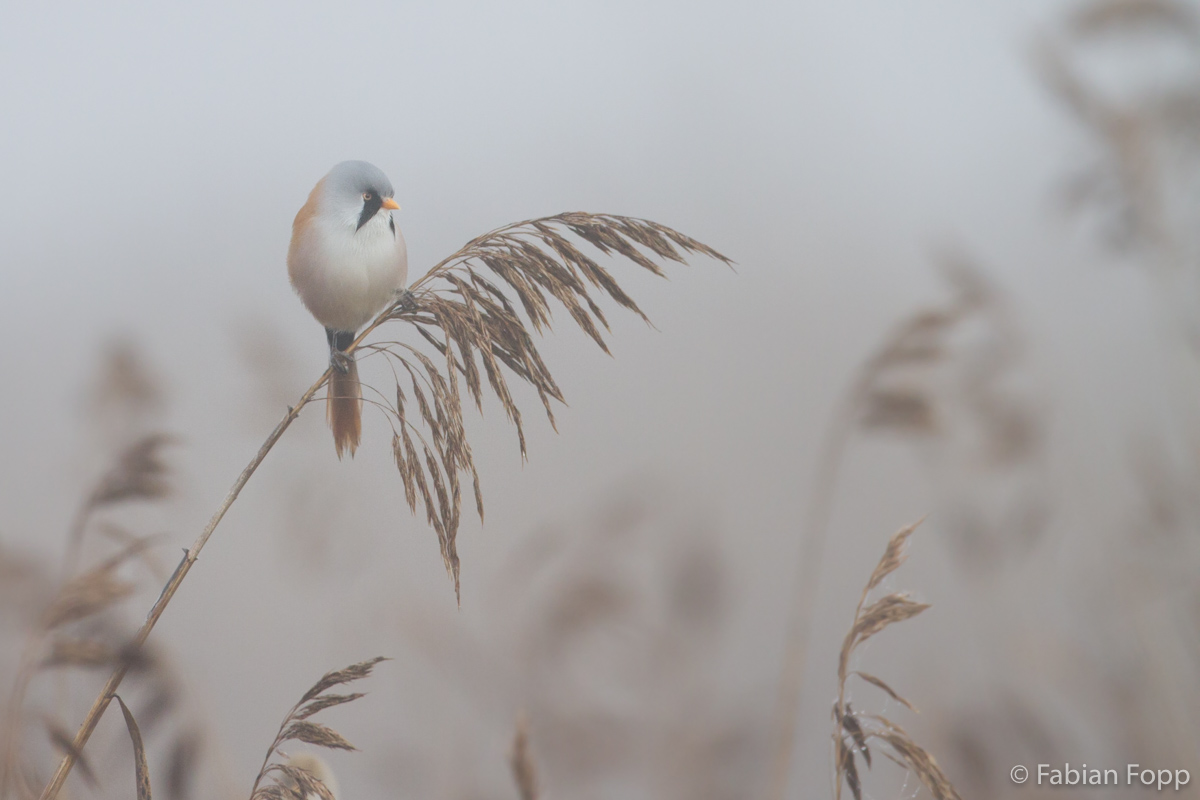 Am Samstag wollte ich wieder einmal eine neue Art fotografieren, nämlich die Bartmeise (Panurus biarmicus). Da sie in meiner Umgebung nicht vorkommen, musste ich bereits sehr früh aufstehen, um bei Sonnenaufgang vor Ort zu sein. Als ich ankam herrschte dichter Nebel, doch im Verlauf des Vormittags lichtete dieser sich und so gelangen mir doch noch einige Aufnahmen.