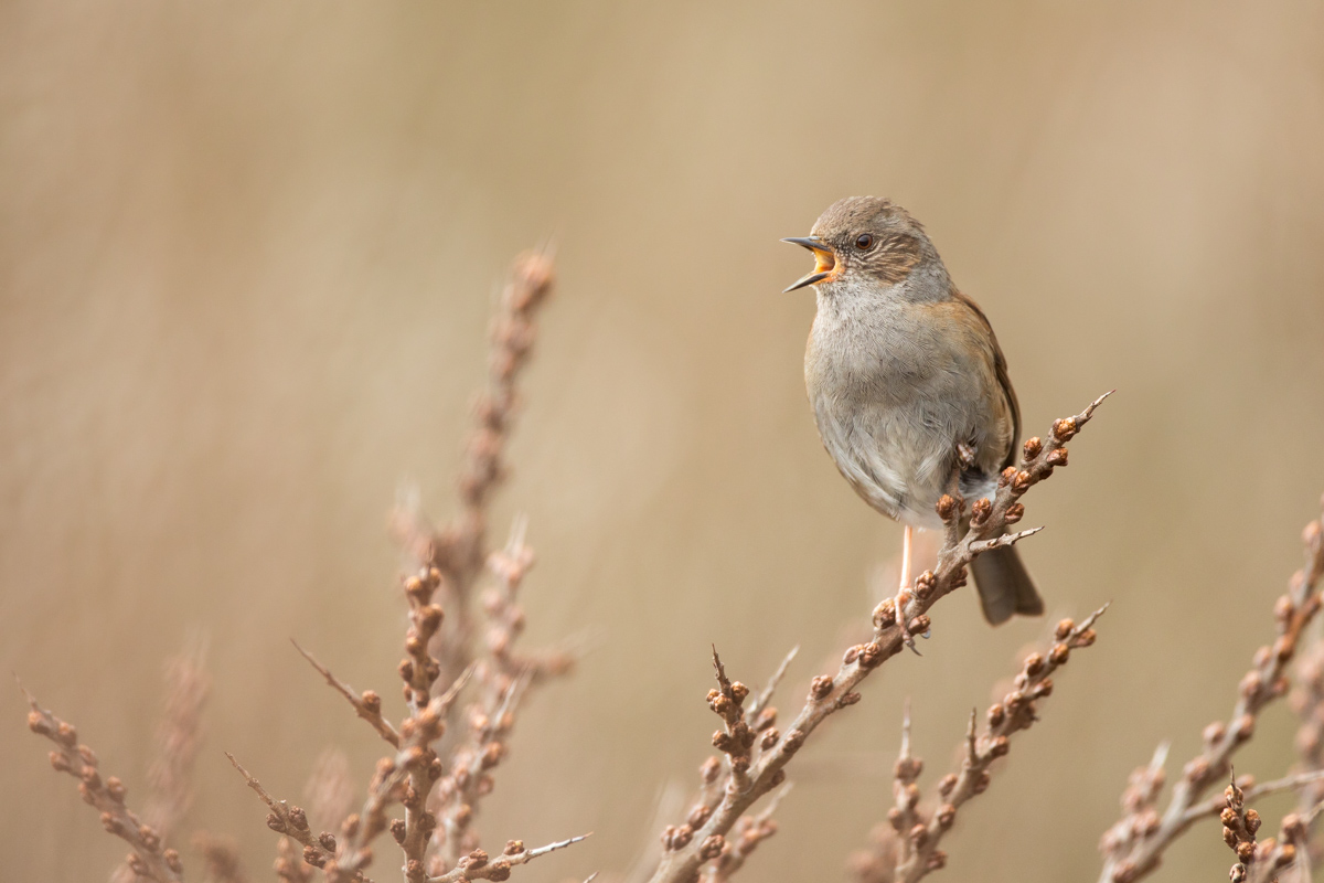 Während unserer Ferien machte uns das Wetter etwas zu schaffen: Bei starkem Wind sind Singvögel sind merklich inaktiver und verziehen sich eher in Büsche, in denen sie etwas geschützter sind. An einigen Tagen hatten wir dennoch Erfolg und konnten gute Fotos der Heckenbraunelle (Prunella modularis) und des Fitis (Phylloscopus trochilus) machen.
