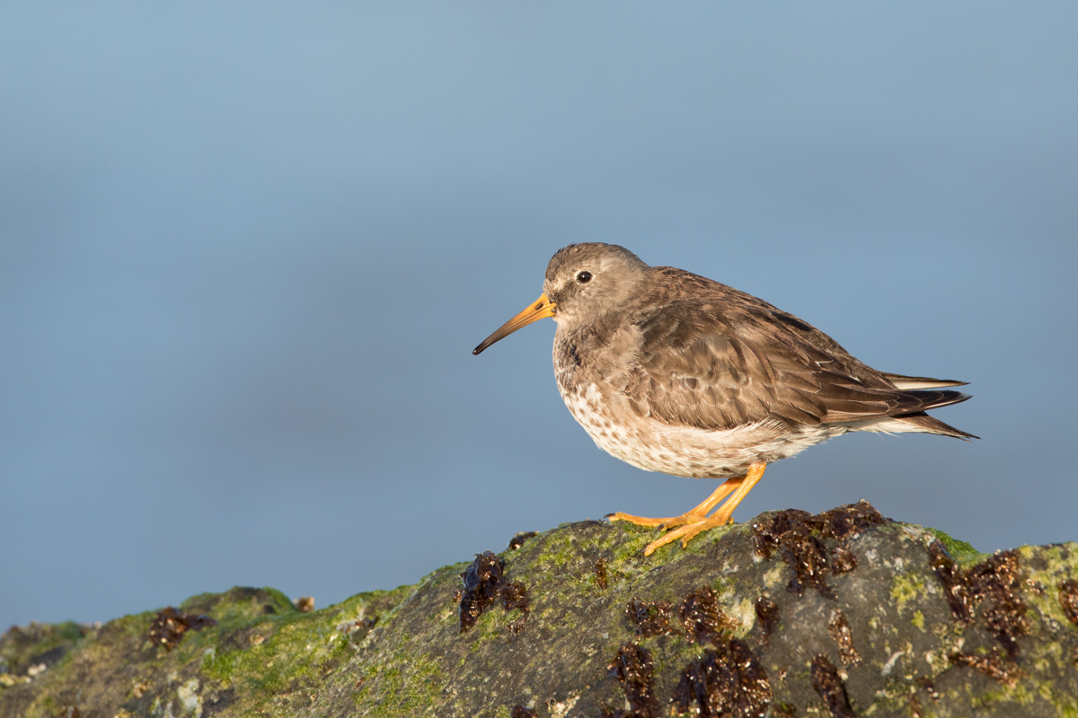 Die Sanderlinge (Calidris alba) waren ebenfalls in kleinen Gruppen anzutreffen, allerdings eher am flachen Sandstrand. Diese kleinen und weissen Limikolen rennen unglaublich schnell der Wasserlinie entlang, ständig auf der Suche nach etwas fressbarem. Es ist gar nicht einfach, sie dabei noch korrekt zu fokussieren!