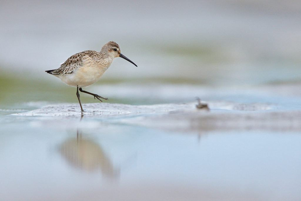 Sichelstrandläufer, mit liegend ab der Isomatte und Bohnensack fotografiert.
